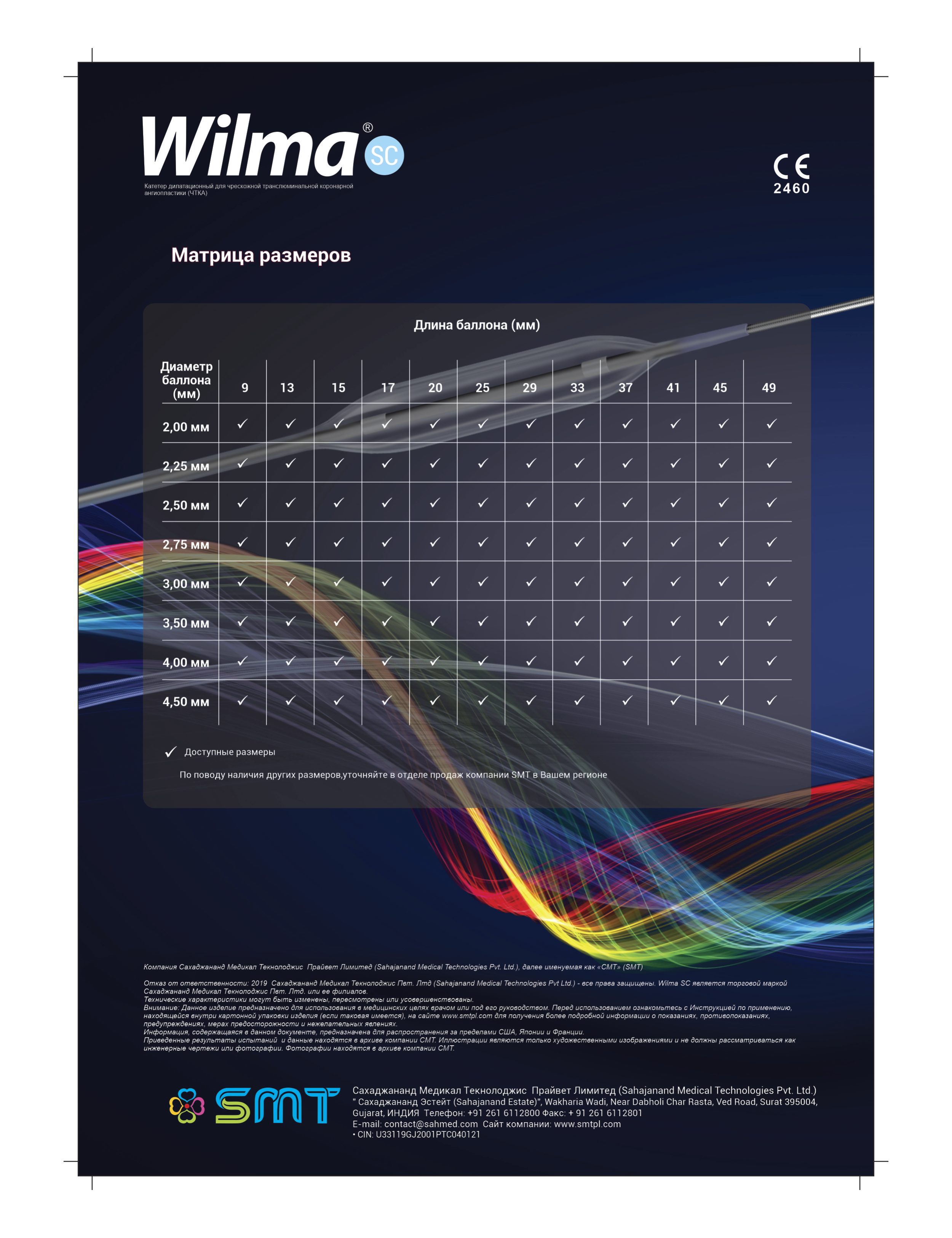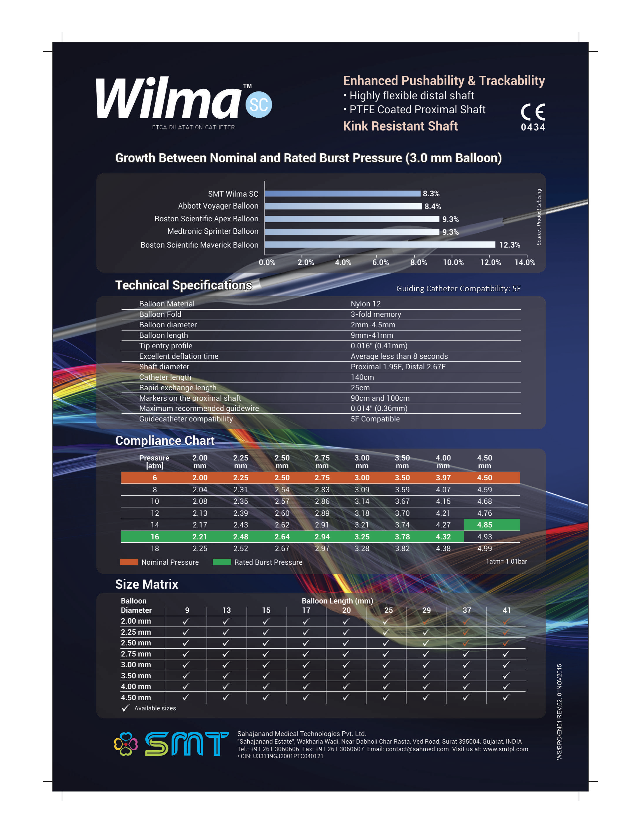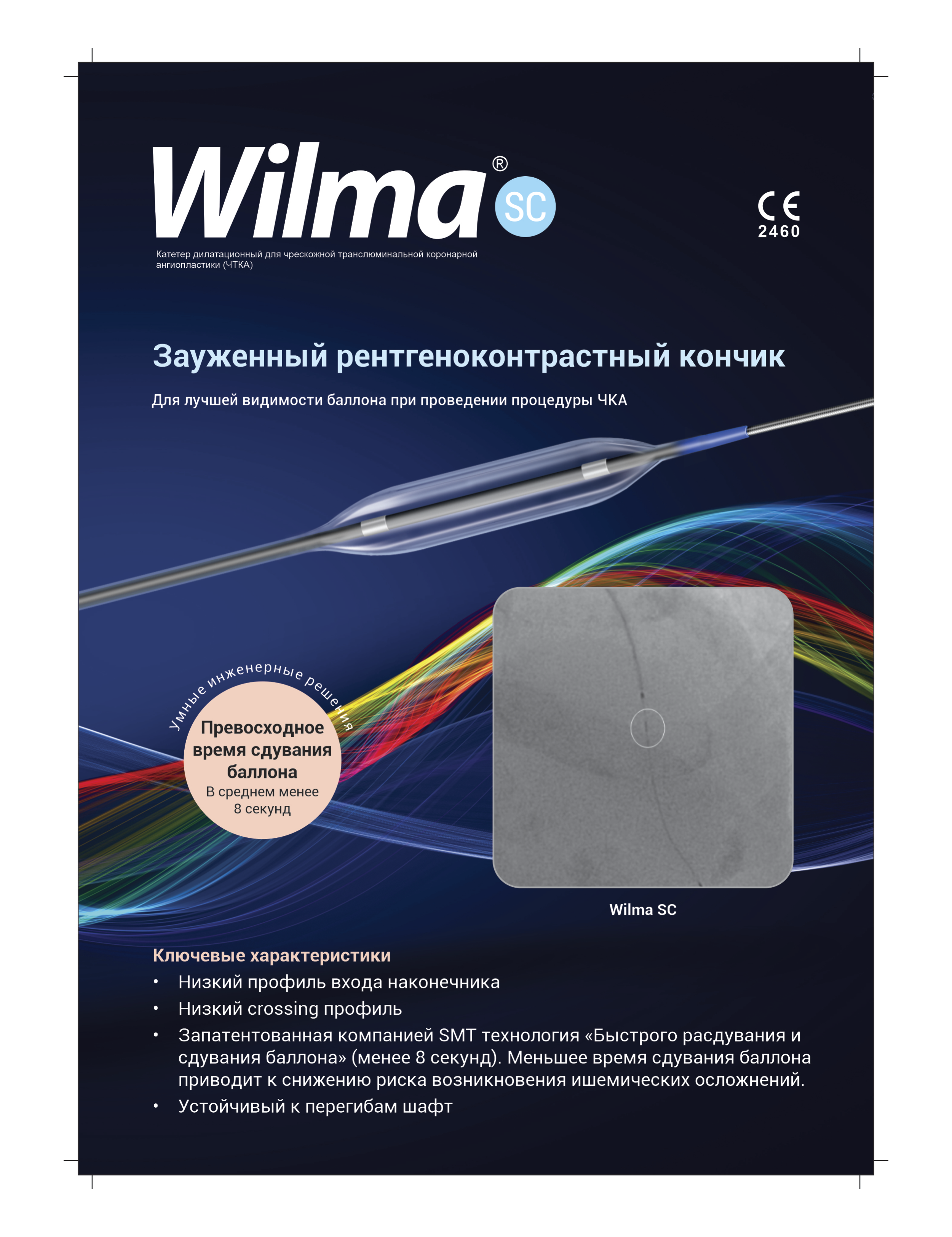 Предназначен для использования в чрескожной транслюминальной коронарной ангиопластике (ЧТКА). Система доставки RX с одним просветом. Диаметр наполненного баллона 2,00 мм; 2,25 мм; 2,50 мм; 2,75 мм; 3,00 мм; 3,50 мм; 4,00 мм; 4,50 мм. Эффективная длина баллона 9 мм; 13 мм; 15 мм; 17 мм; 20 мм; 25 мм; 29 мм; 33 мм; 37 мм; 41 мм. Расчетное давление разрыва 16 атм. и 14 атм. для размеров 4,50 мм; 5,00 мм. Диаметр самого большого совместимого проводника 0,36 мм (0,014”). Диаметр проводникового катетера ≥1,67 мм (5 F).